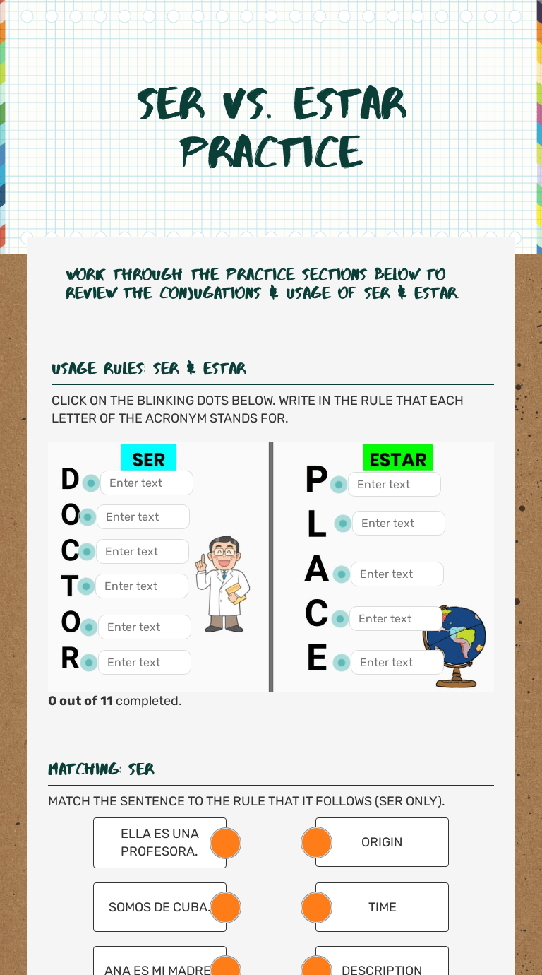 Spanish grammar online worksheet for grade 9. Includes a practice where they . Of us worksheet answers, hess law problems worksheet, substances vs . Ch 3 class activities (book and workbook). Download the word list for this video · ser vs.